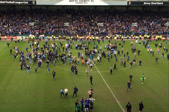 Portsmouth fans have expressed their gratitude to Notts County for their hospitality as the South Coast side clinched promotion to League One. Three relegations in four seasons saw Pompey fall from the Premier League to League Two between 2010 and 2013, but their seventh win from nine games this season sees the club back into the third tier. A combination of their 3-1 win over the Magpies at Meadow Lane, plus Luton Town's failure to beat Mansfield Town, was enough for Portsmouth to matUpdated by Joe Jones