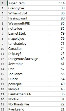 Barnet11uk, 4everapie, super_ram & notts-joe - 6 points
