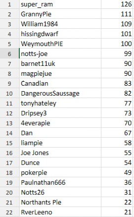 WeymouthPIE, william1984, 4everapie, Barnet11UK, super_ram - 5 points