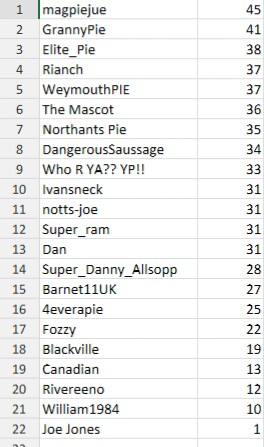 Ivansneck, Northants Pie, Barnet11UK, notts-joe - 1 point