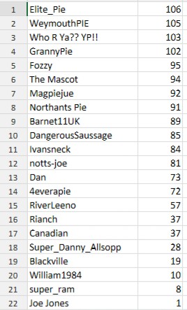 Northants Pie & notts-joe - 4 points