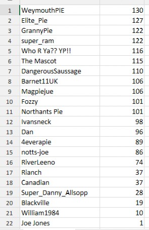 Who R Ya?? YP & Northants Pie - 2 points