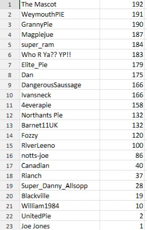 WeymouthPIE & UnitedPie - 2 points