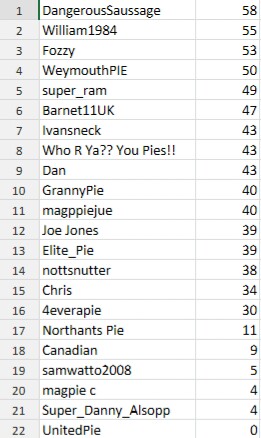 WeymouthPIE, Fozzy & 4everapie - 7 points