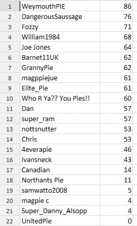 WeymouthPIE, Dan, Chris, nottsnutter, magpiejue, Joe Jones & Who R Ya?? YP!! - 1 point