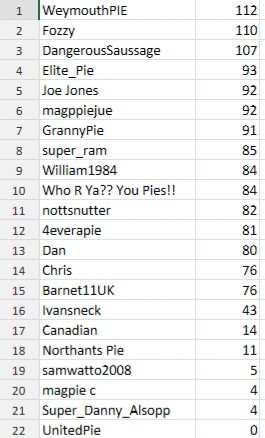 Dan, magpiejue, Nottsnutter & grannypie - 5 points