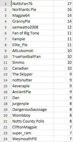 Magic Magpie, Wombboy, super_ram, Notts County Polls & Nottsnutter - 4 points