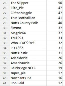 Weymouthpie, upthepies & Barnet11uk - 7 points