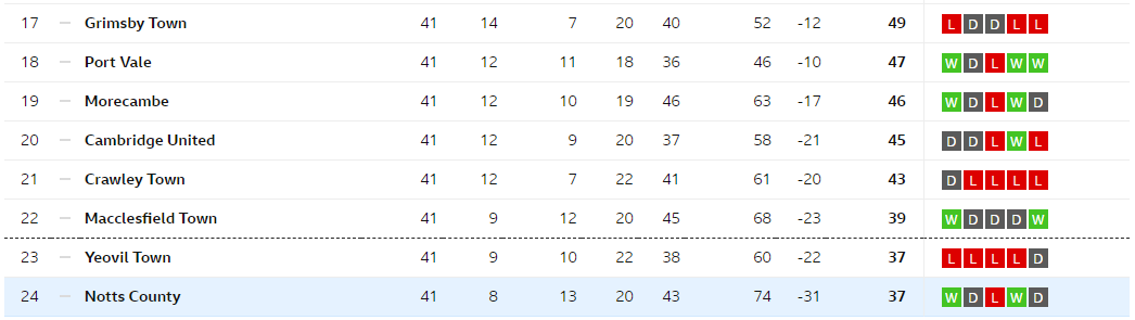If it wasn't for the recent form, I think Notts would be as good as down but there is still some hope.
